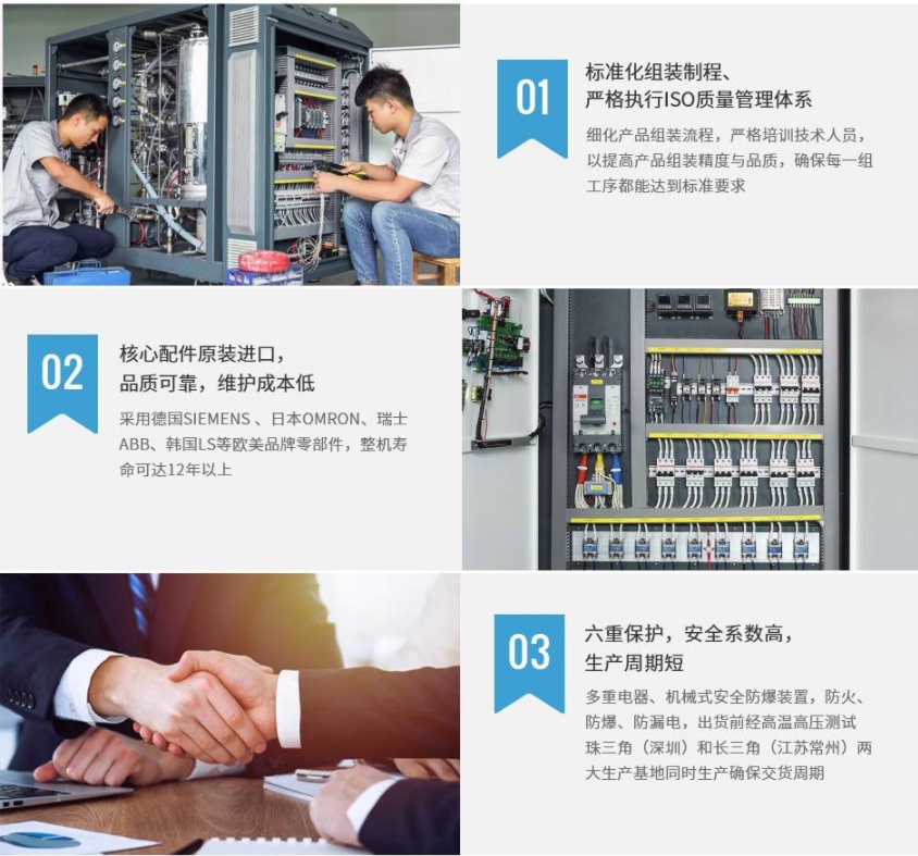 (歐姆龍)、ABB、施耐德、LS等的電器部件品質(zhì)有保障。安全保護功能完善,故障直接顯示,維