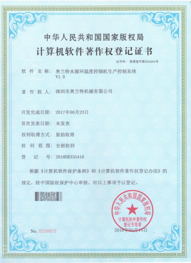 奧蘭特水循環(huán)溫度控制機生產控制系統(tǒng)_奧蘭特油循環(huán)溫度控制機質量檢測系統(tǒng)_奧蘭特恒溫水一體機自動調節(jié)系統(tǒng)榮譽證書